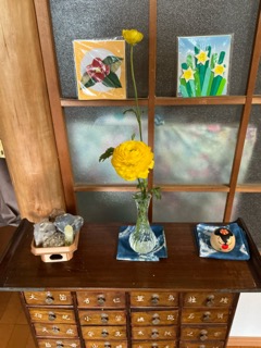 散髪の予約帰りに近所の花屋へ立ち寄り、春を告げる黄色のラナンキュラスを求めました。先日100円ショップで見つけた器に、早速家内が生けてくれたその姿は、凛として私の背筋を伸ばしてくれます。